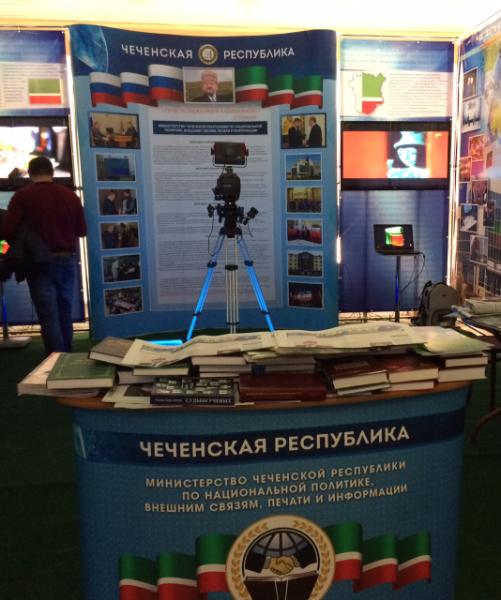 — Я очень рад приветствовать вас в нашем павильоне. На наших стендах и мониторах показано прошлое и настоящее СМИ Чечни как теле- и радиожурналистики, так печатных и интернет- изданий. Более того, хочу отметить, что чеченские телевизионщики, как и другие представители СМИ региона, по личному поручению Главы Чеченской Республики, Героя России Рамзана Ахматовича Кадырова, обеспечены самой современной техникой.