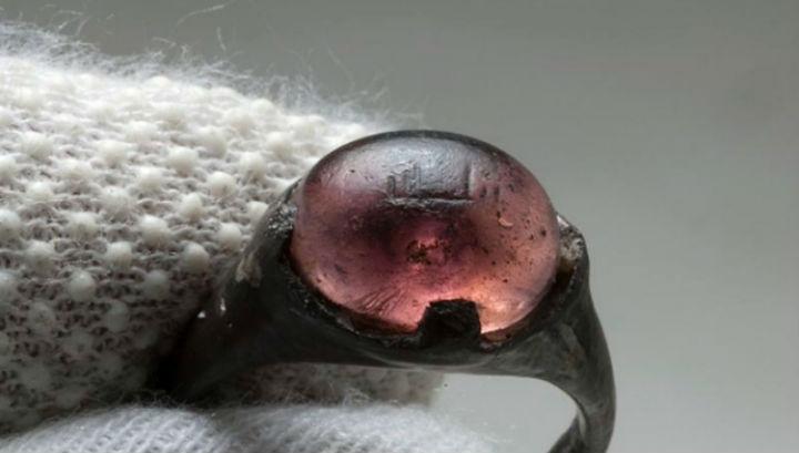 Сначала археологи предположили, что камень в кольце сделан из фиолетового аметиста. Однако позже эксперты с помощью электронного микроскопа выяснили, что материалом послужило цветное стекло - редкий в те времена материал.