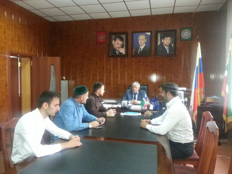 Председатель молодежного парламента ЧР Муртуз-Али Дагаев вместе со своими заместителями Л-А.Эрсабиевым, З.Сулумовым встретился с главой Администрации Наурского муниципального района Владимиром Александровичем Кашлюновым по вопросу активизации работы в районе путем создания муниципального Молодежного парламента.
