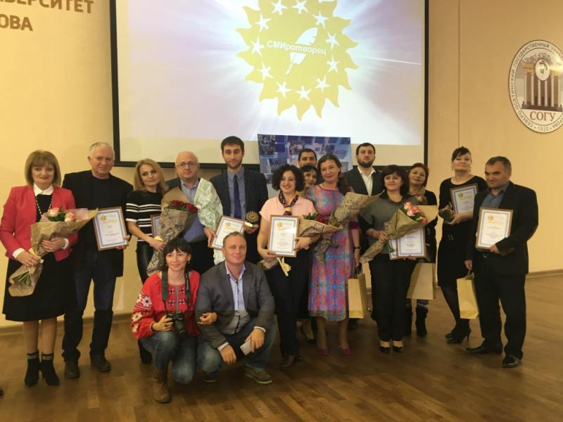 Сегодня, 14 октября, во Владикавказе состоялась торжественная церемония награждения лауреатов и победителей Окружного этапа по СКФО Vlll Всероссийского конкурса «СМИротворец» на лучшее освещение в СМИ темы межэтнического взаимодействия народов России и их этнокультурного развития.