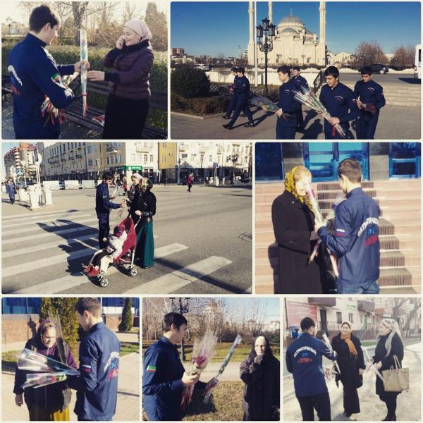 Как стало известно ИА "Грозный-информ" активисты Патриотического клуба «Путин» при поддержке магазина цветов «Фирдавс» провели сегодня на улицах г.Грозного акцию, в рамках которой от лица молодежи поздравили женщин-матерей.