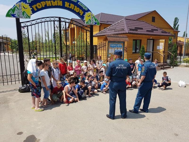 В теоретических занятиях, проведенных инспекторами Госпожнадзора и отдела безопасности людей на водных объектах, приняла участие вся смена оздоровительного лагеря «Светлячок» в селе Сержень-Юрт Шалинского района.