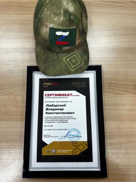"Окончен Спецкурс-1 в Российском Университете Спецназа. Базовые основы медицинской помощи в полевых условиях, стрелковой подготовки, тактики. В отличной компании, под руководством опытных инструкторов. Это было не очень просто, но зато очень полезно", - написал В. Любарский.