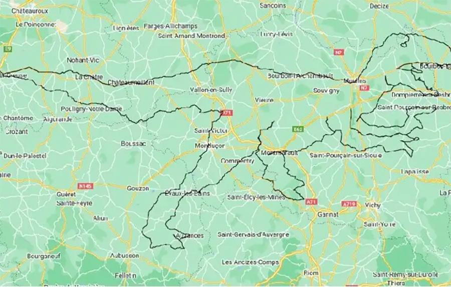 Французские велосипедисты проехали больше 1000 км, чтобы нарисовать динозавра на карте GPS